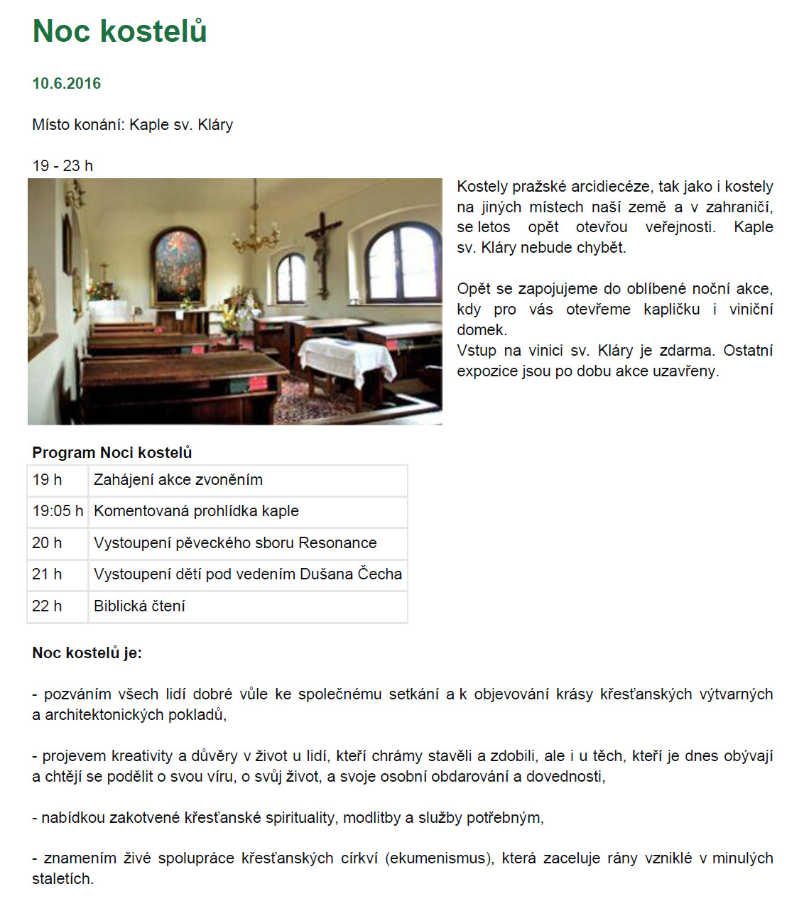 | Fotogalerie: | Noc kostelů - Kaple sv. Kláry - Botanická zahrada |